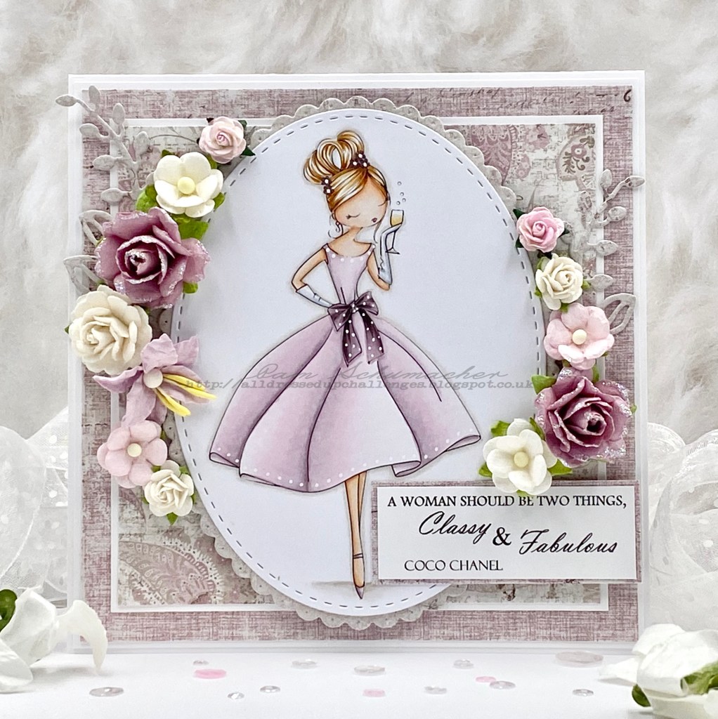 Someone is all dressed up for a fabulous night on the town, and isn’t she GORGEOUS! My inspiration today for All Dressed Up Stamps features the beautiful image called Prosecco Time.