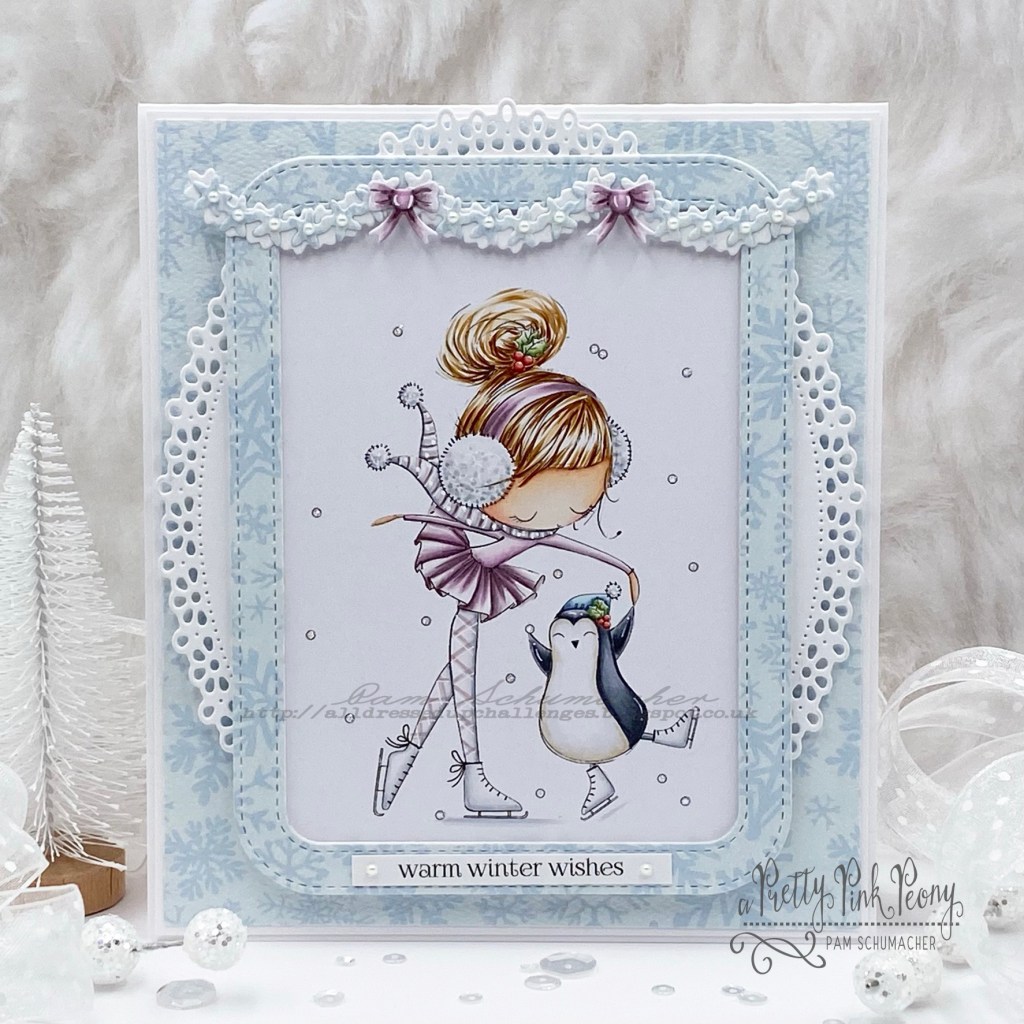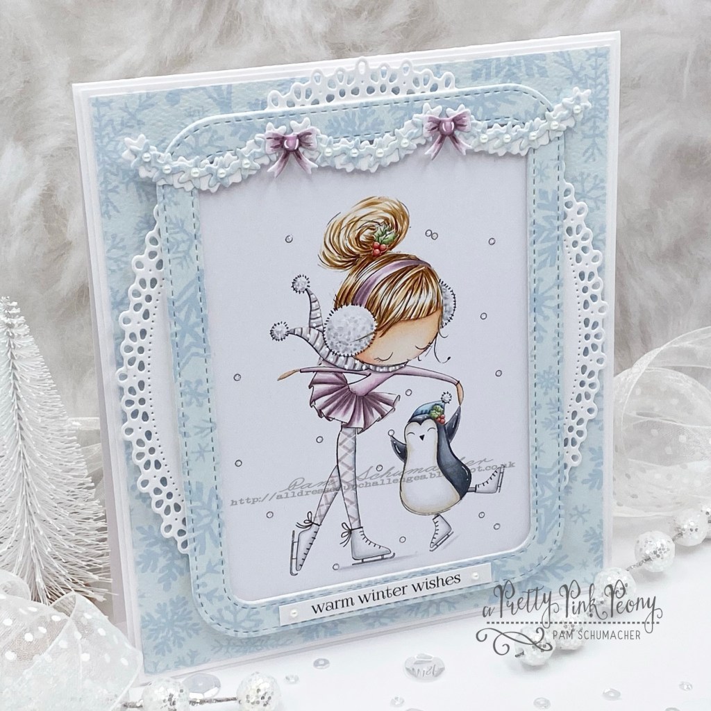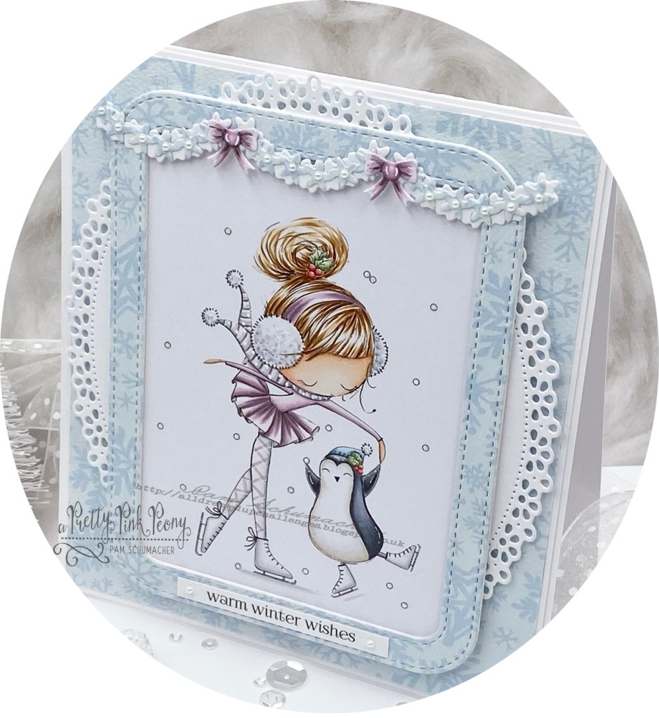 This little sweetie twirling with her penguin is called Christmas Skate and is from All Dressed Up Stamps.