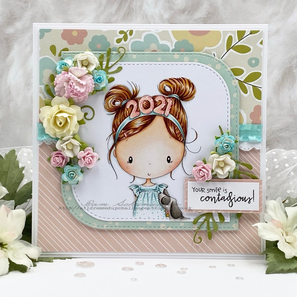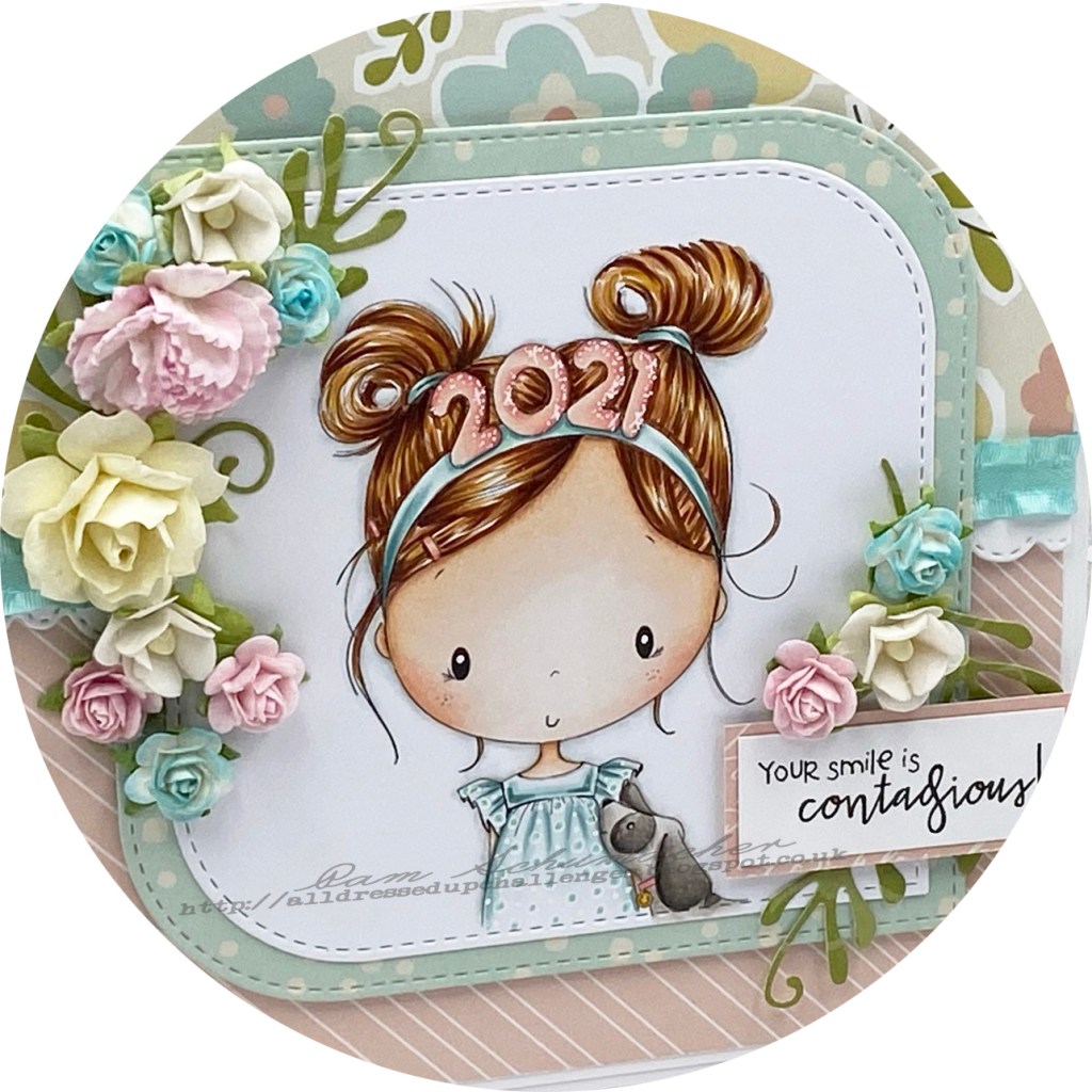 My card today features another little cutie pie from All Dressed Up Stamps called Keep Smiling. Love, love, love this little sweetheart!