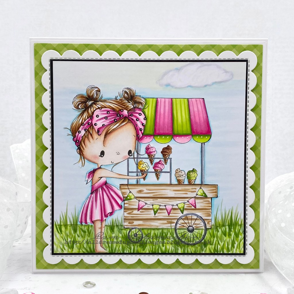 I love summer…and I love ice cream!! This gorgeous image from All Dressed Up Stamps is called ‘Summer Ice Cream‘. She’s having a hard time choosing from all the fabulous flavors..lol!