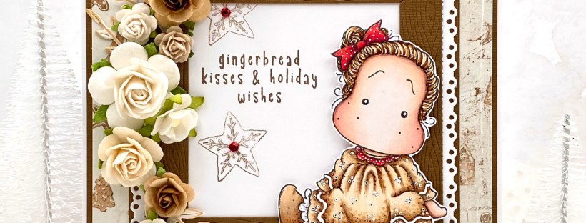 I am back with my design team project for I Am Roses. My card today features this adorable gingerbread image from Magnolia Stamps. She is part of the Pop Up Box called ‘Gingerbread ‘ from 2022.