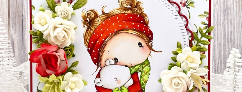 My design team project for I Am Roses today features this super sweet digital stamp from All Dressed Up Stamps called Christmas Bear Hugs.