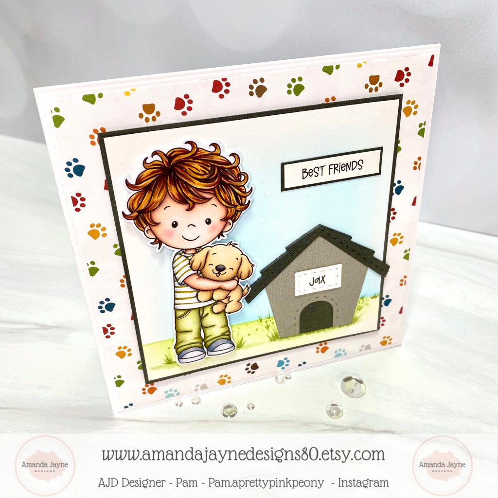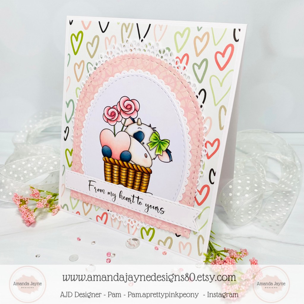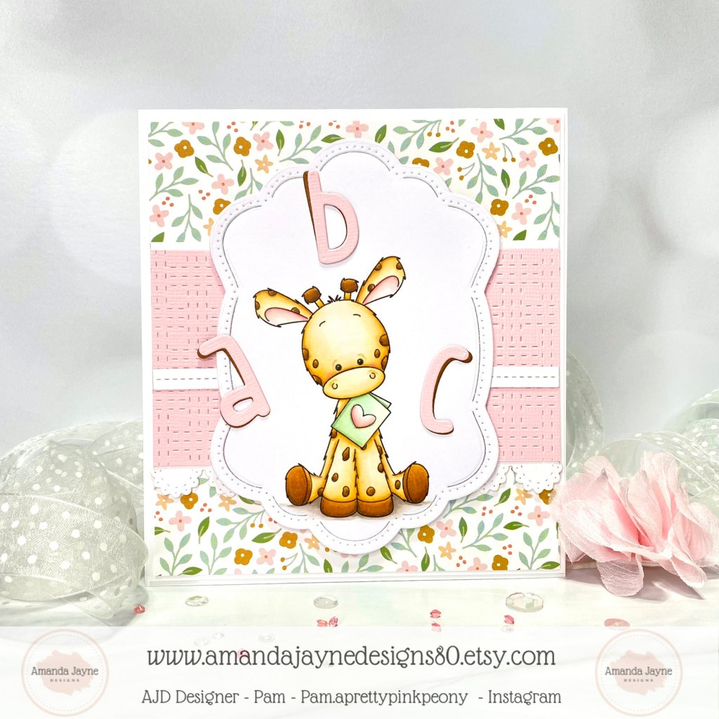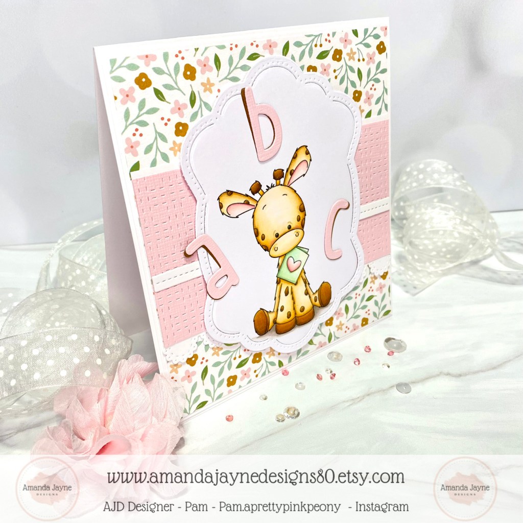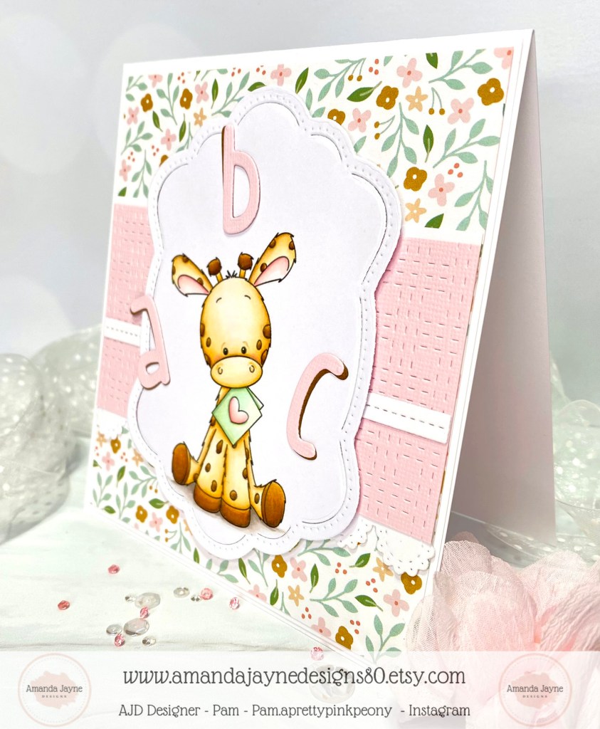 I’m back today with a super sweet baby card created with the digital image called ‘Love Note Giraffe‘ from Amanda Jayne Designs.