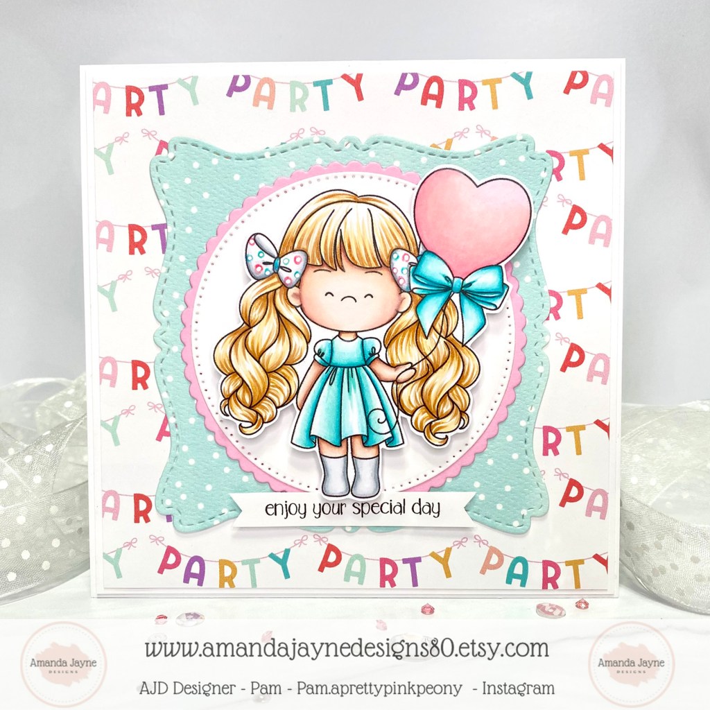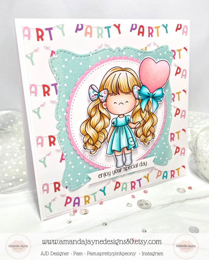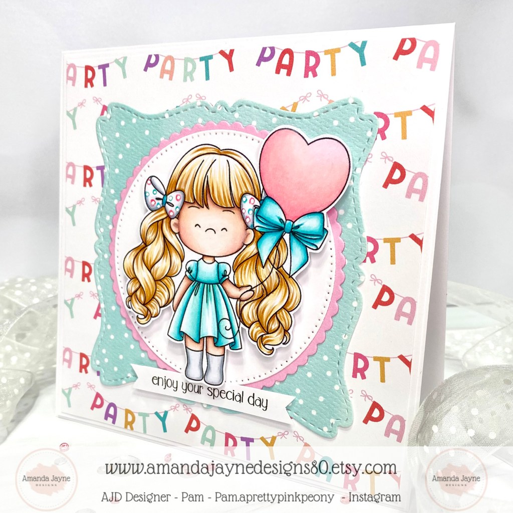 Today I am sharing my design team card for Amanda Jayne Designs featuring this adorable digital image called Heart Balloon Girl.