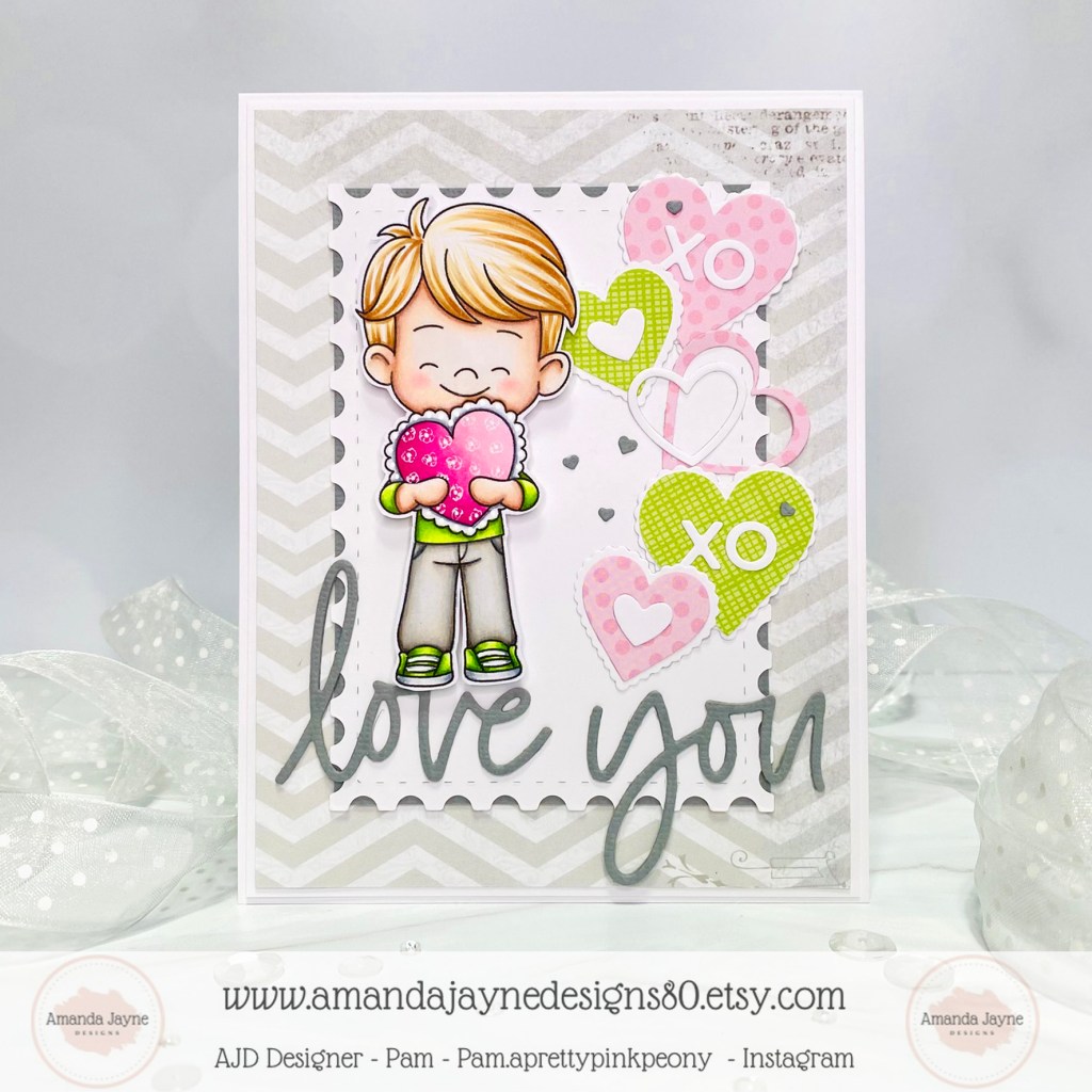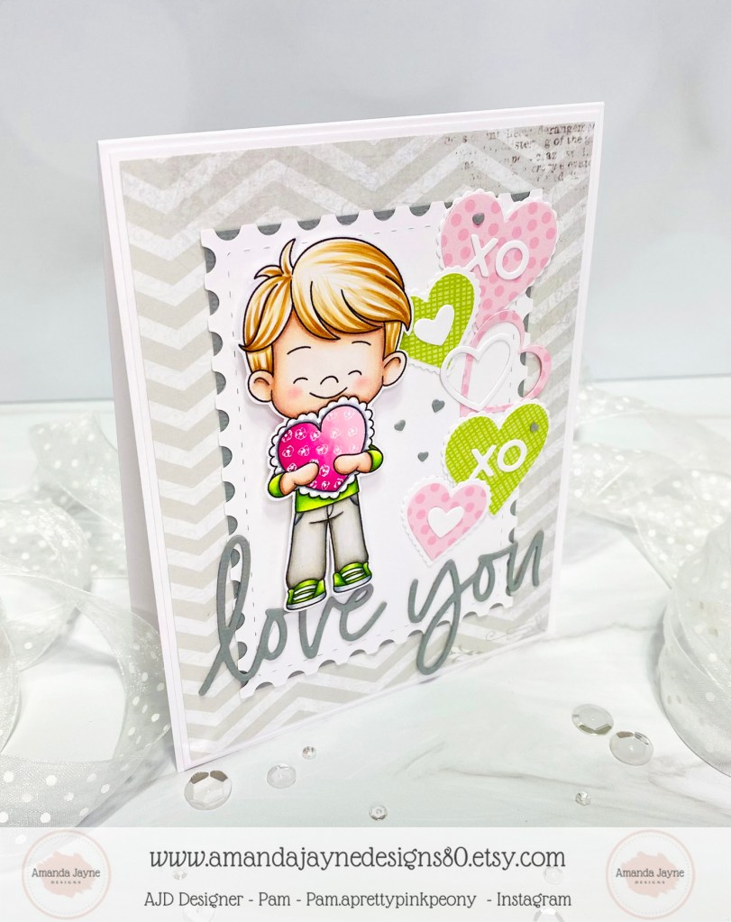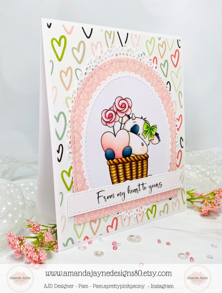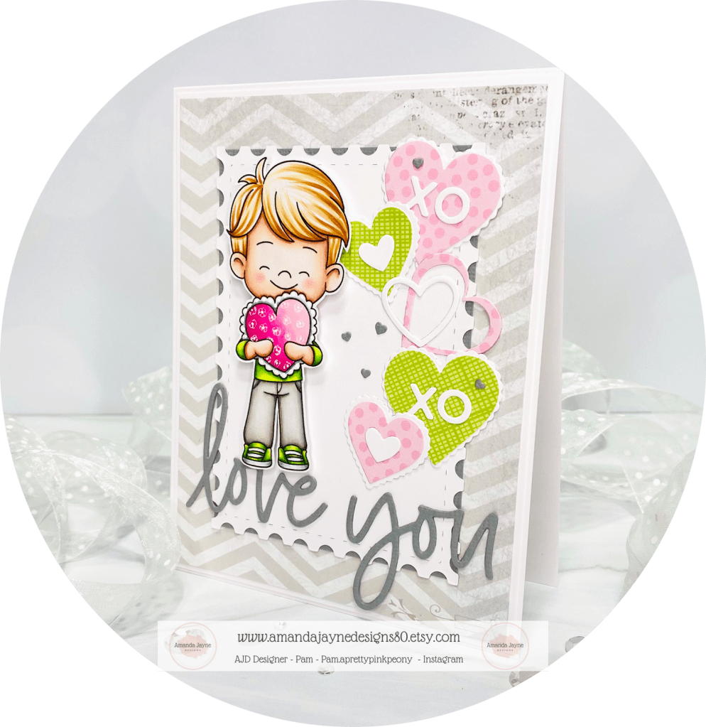 Today I am sharing my design team card for Amanda Jayne Designs featuring this adorable digital image called Heart Balloon Girl.