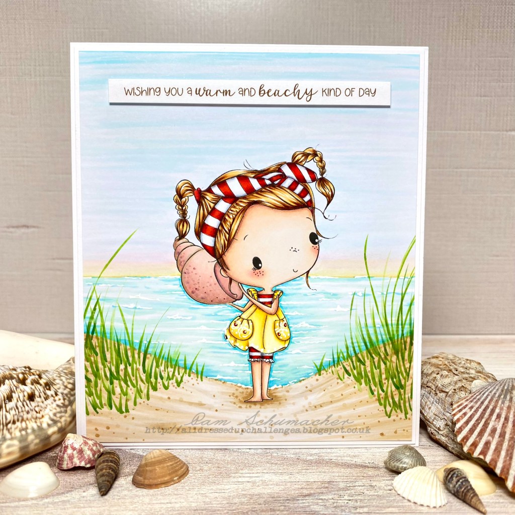 It’s not often that I color a complete background, but this cutie needed to be at the beach…lol!