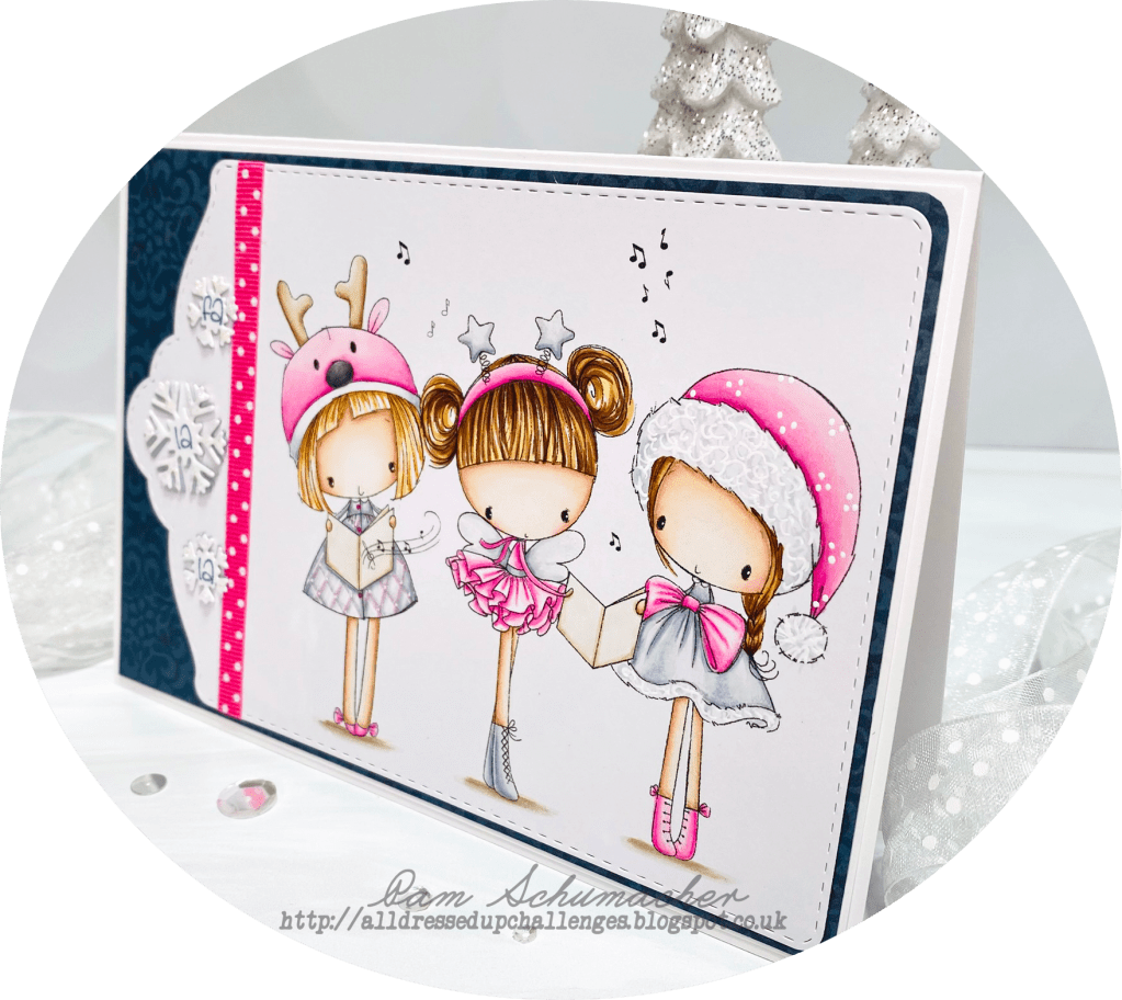 My card today features the adorable caroling trio called ‘3 Little Christmas Girls‘. What cuteness to create with!