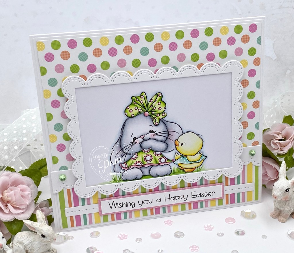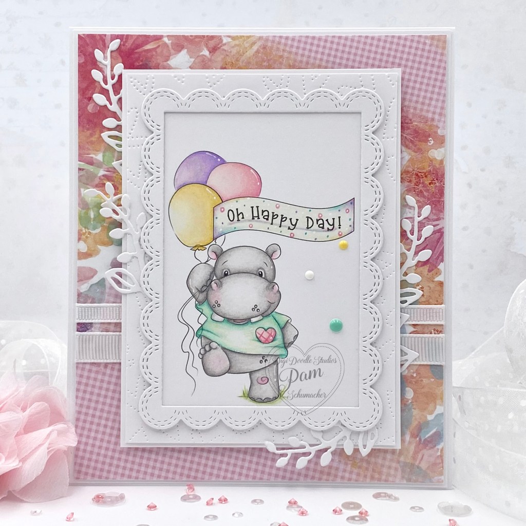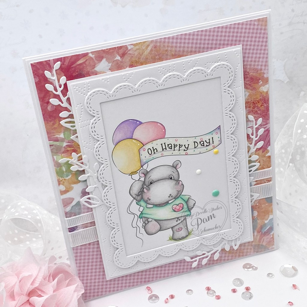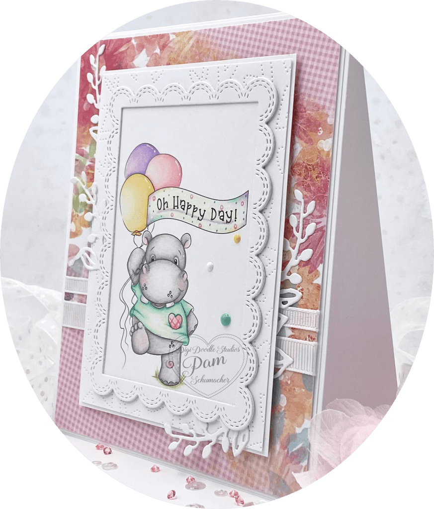 Today I am sharing this super adorable image from Digi Doodle Studios called Hadley Hippo’s Happy Wishes. How sweet is she?? I paired her with the beautiful Floral Blends Digital Paper Pack.