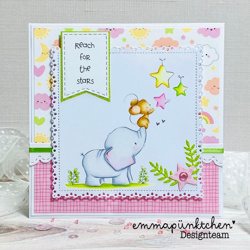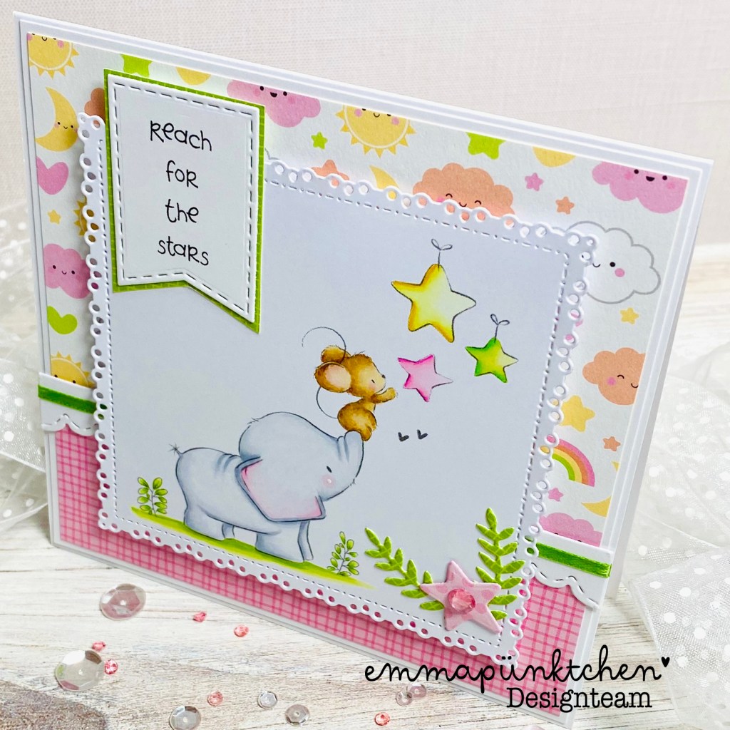 I kept the design simple to focus on the sweet image. Finding the perfect paper was the bigger struggle for me as I never seem to be able to decide on something.